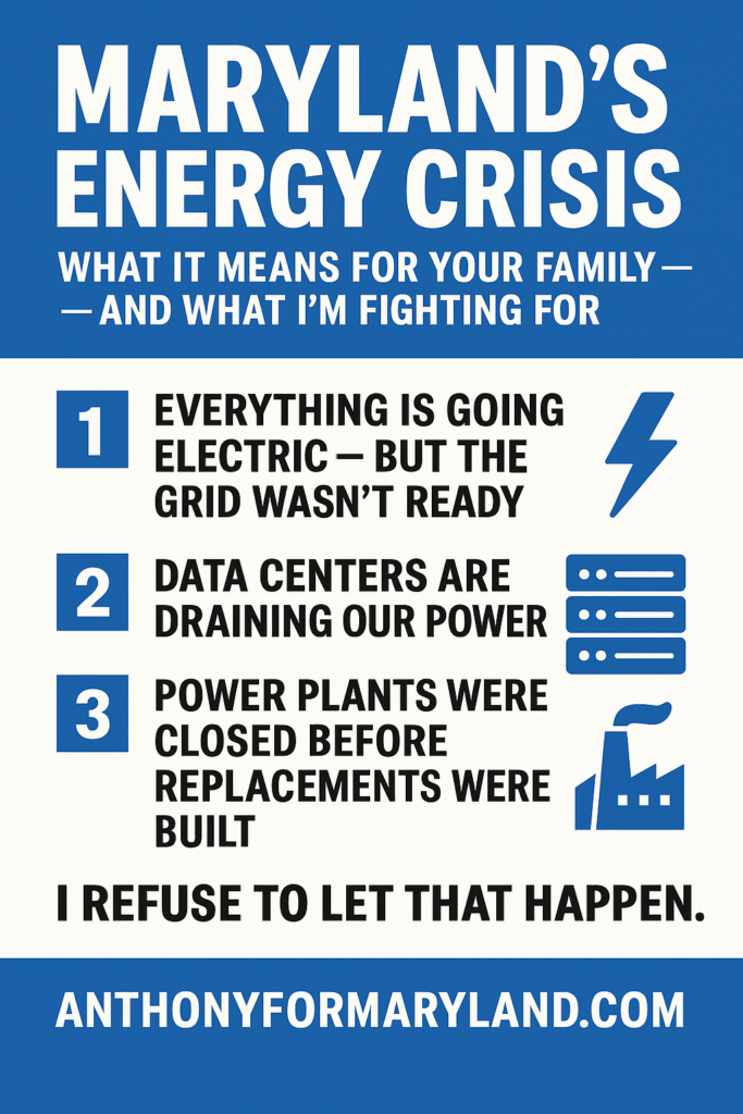 The electricity powering our phones, our schools, our hospitals, and our businesses is not abstract. It is the foundation of modern life. If Maryland fails to plan for its energy future now, the blackout won’t just hit the grid—it will hit household budgets, business survival, and public safety.